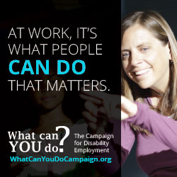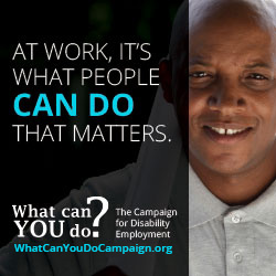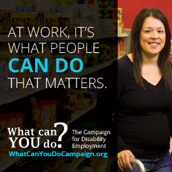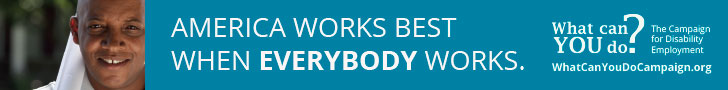 Do you manage a website, print publication or e-newsletter? Consider publishing a Campaign for Disability Employment (CDE) web or print advertisement to help us promote our important message. Select from the series of ads below, which offer downloadable, print-ready advertisements in a variety of styles and dimensions.